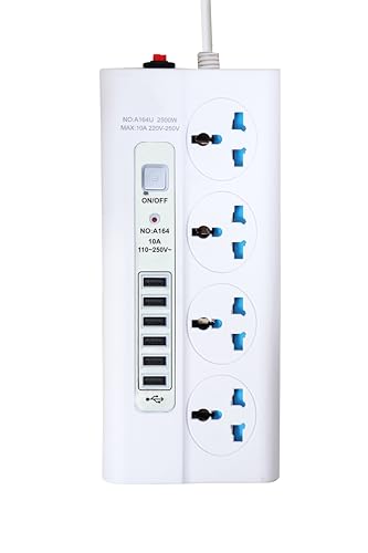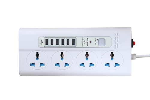 Generic - Power Strip 2500W 10A Power Strip with Multiple USB Outlets and Outlets with Red Fuse Overload Protection with Main On/Off Button (4 Power Outlets & 6 USB Outlets)