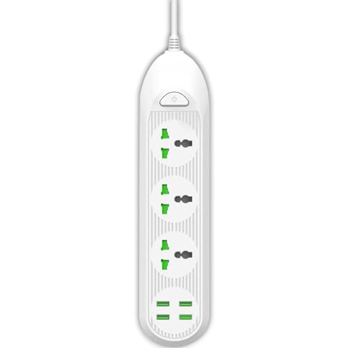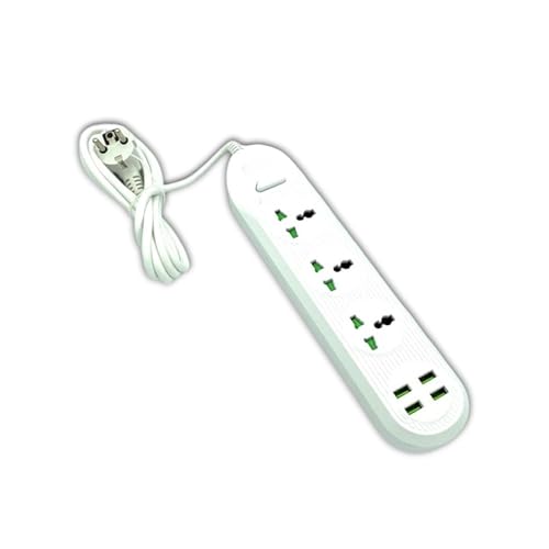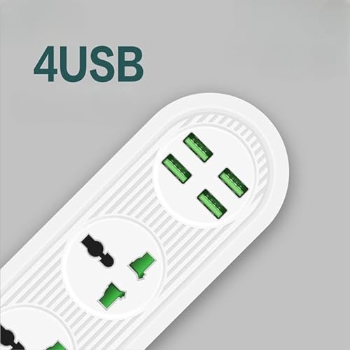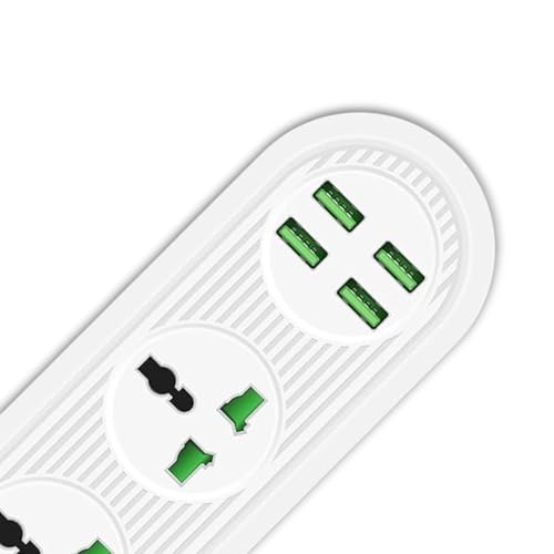 Generic - Power Strip 3000W – 5-Outlet Extension Socket with Overload Protection, Independent Switches, Flame-Retardant Material, 5.4A USB Ports, 2M Cable, EU Plug – White