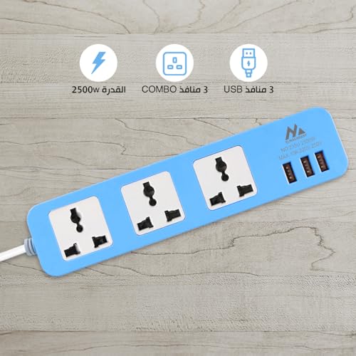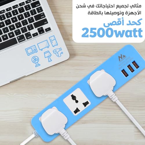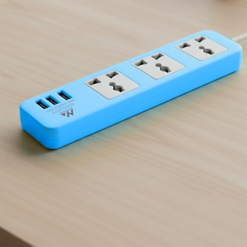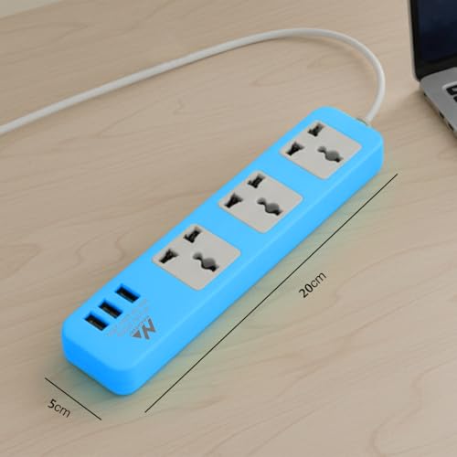 Generic - Power Strip Extension Socket 2500W with 3 Usb Charger Ports Multi Plug Surge Protector with Overload Protection for Home and Office, model 235U (Blue)