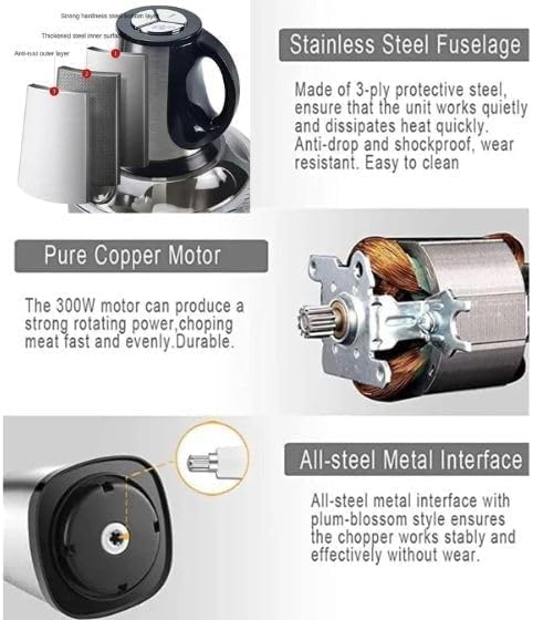 - ⚡ 1️⃣ Powerful Pure Copper Motor (300W) High-performance pure copper motor delivers strong, fast, and even chopping for meat, vegetables, nuts, and more—built for durability and long service life.