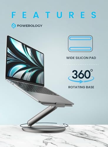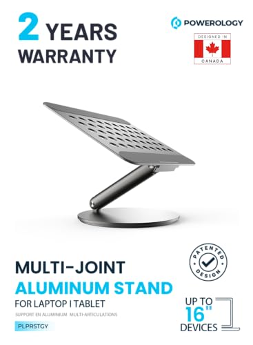 Powerology - Powerology Adjustable Aluminum Laptop & Tablet Stand – 360° Rotating Base, Multi-Joint Design, Compatible with Devices up to 16” – Gray
