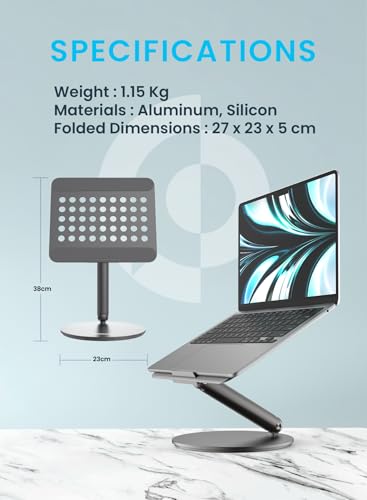 - 【𝐑𝐞𝐯𝐨𝐥𝐮𝐭𝐢𝐨𝐧𝐚𝐫𝐲 𝟑𝟔𝟎° 𝐑𝐨𝐭𝐚𝐭𝐢𝐧𝐠 𝐁𝐚𝐬𝐞】Easily adjust your laptop or tablet to any viewing angle with the 360° rotating base for optimal comfort and productivity.