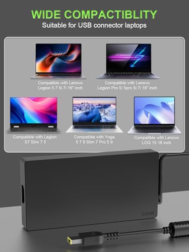 PowerPortnerLink - 300W Slim Charger Compatible with Lenovo Legion Pro 5 7 5i 7i 9i 16IRX8 16ARX8H 16IAH7H 16IRX9 16IAX10H 16ITHg6 16ACHg6 16IAX7 R9000 Y9000 ThinkPad R7000P LOQ 17IRB8 Laptop