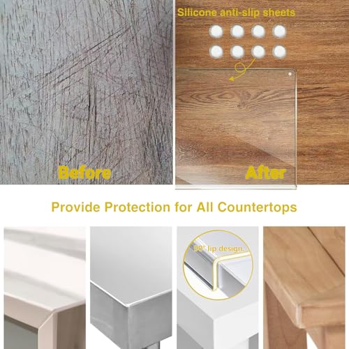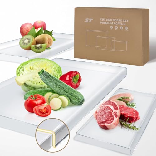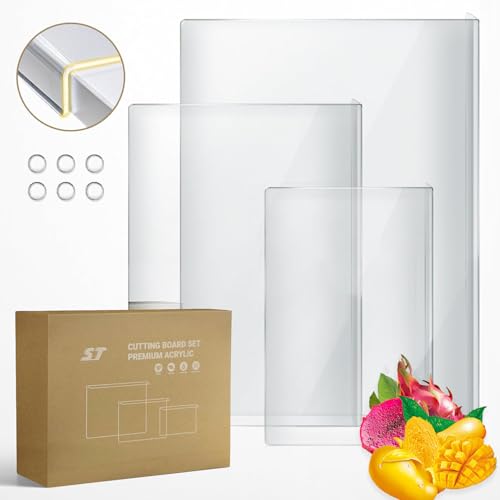 PPUMP - مجموعة ألواح تقطيع أكريليك بحافة منضدة، لوح تقطيع شفاف غير قابل للانزلاق لسطح الطاولة، للمطبخ لتقطيع الخضروات واللحوم والجبن والفواكه والخبز من بي بامب، 3 قطع، أحجام صغير وكبير وكبير جدًا