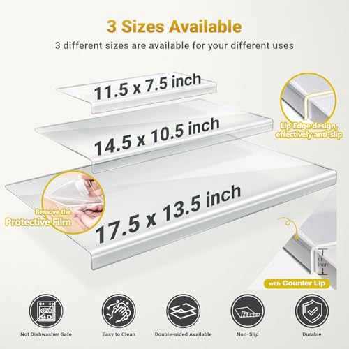 - مزدوج الجوانب للاستخدامات المتعددة: لوح التقطيع الأكريليك المكون من 3 قطع لطاولة المطبخ مثالي لجميع احتياجات منضدة المطبخ. مثالي للتعامل مع الخضروات والسندويشات والبيتزا والكعك وغيرها من الأطعمة. بالإضافة إلى ذلك، بفضل تصميم حافة الشفاه وميزة سهولة التنظيف، يمكنك استخدام ألواح التقطيع الشفافة مع أي جوانب لديكور المطبخ وألواح عشاء الأطفال وألواح تشاركوتيري وحصائر العجين وحصائر المعجنات وألواح الرسم والمزيد!
