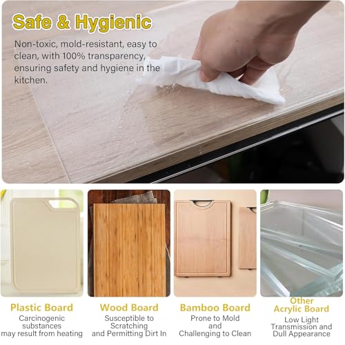 - آمن وبجودة عالية: لوح التقطيع الأكريليك الخاص بنا مصنوع من الأكريليك الآمن غذائيًا بنسبة 100%، لذلك يمكنك أن تكون واثقًا من أنه سيلامس الطعام. بالمقارنة مع المواد الأخرى، يتمتع الأكريليك بمتانة أفضل ومقاومة للتشقق مع الحفاظ على خفة الوزن، وليس من السهل تشويهه أو كسره، وسوف يخدمك لفترة طويلة.