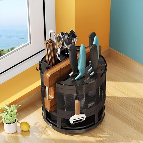 Generic - رف مطبخ عملي - منظم دوار مصمم لتخزين عيدان تناول الطعام وتنظيم سطح المطبخ، كما يعمل كرف تجفيف للملاعق والسكاكين لمستلزمات المطبخ (1 منظم)