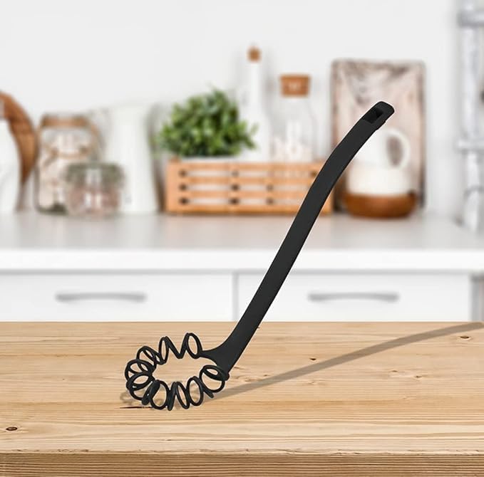 - تصميم مبتكر: مضرب يدوي بلاستيك بتصميم حلزوني دائري فريد يسهل عملية الخلط والهرس بكفاءة عالية داخل الأواني المختلفة