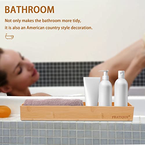 PRATIQUE - Bamboo Drawer Organizer,Kitchen Utensil Organizer Silverware Tray,Cutlery Holder , Wood Storage Box for Flatware, Makeup, Bathroom, Office Desk,15*3*2,Bamboo