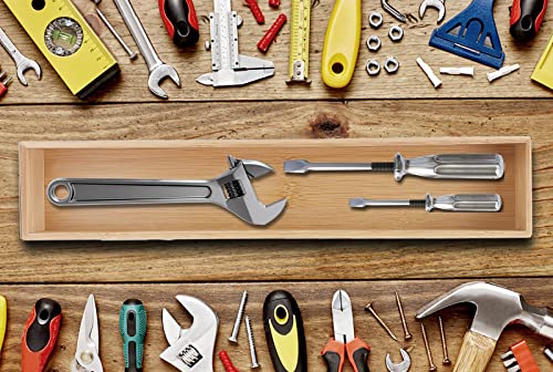 - 【PRACTICAL STORAGE SPACE】PRATIQUE drawer organizer can reduce clutter and avoid desperately searching for lost items. Ensure drawers in the kitchen and beyond are neat and organized.The flatware organizer is made of bamboo, which has a neutral light wood color and it will look beautiful as your kitchen, closet, garage and office drawer.