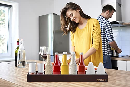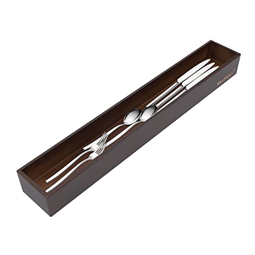 PRATIQUE - Bamboo Drawer Organizer,Kitchen Utensil Organizer Silverware Tray,Cutlery Holder , Wood Storage Box for Flatware, Makeup, Bathroom, Office Desk(20*3*2,Nut-brown)