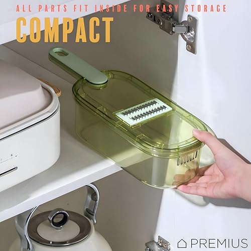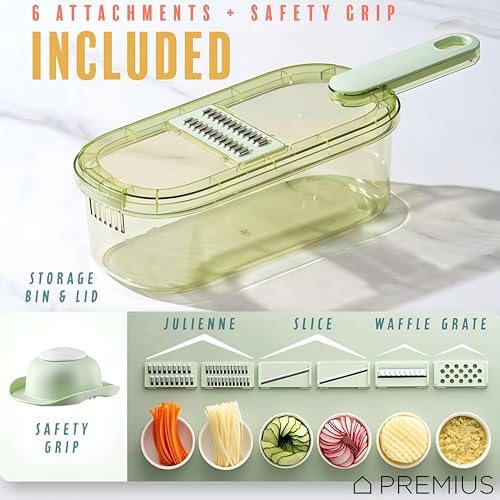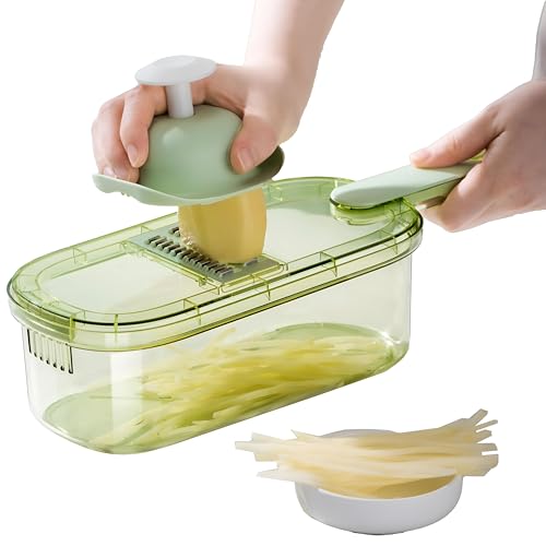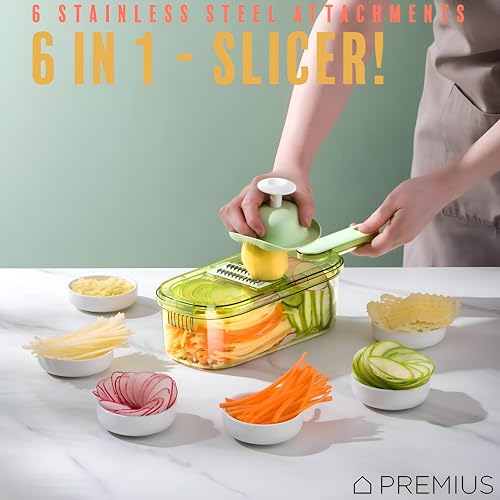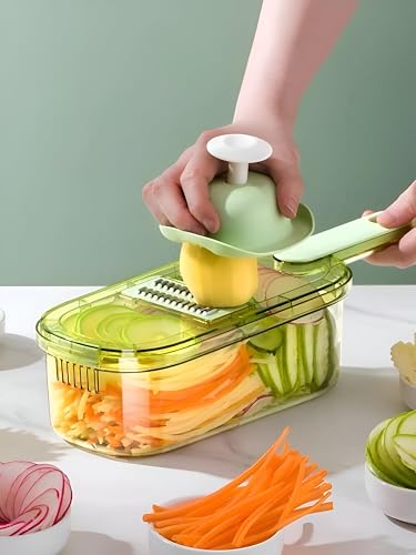Generic - Precision Slicer - High-efficiency 6-in-1 mandoline with hardened stainless blades, anti-slip safety grip, and detachable storage bin, sleek green-clear finish, 1.5 quarts, 35x12x9.4 cm