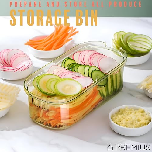 - The included 1.5-quart transparent storage bin captures ingredients as you slice, reducing countertop mess and keeping prepped food organized—its clear lid allows easy monitoring of contents without opening the container.