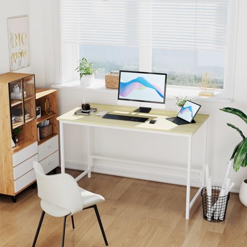 Precision Synergie - Computer Desk, Home Office Desk 100 x 55 x 74 cm, Writing Desk, Desks & Workstations Modern Simple Style, Computer Table for Study, Home Office,Living Room, Metal Frame, Pale Yellow