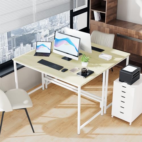 - 【Durable Design】 The high-quality particleboard is waterproof, heat-resistant, and easy to clean, while the reinforced metal frame ensures maximum durability and safety. Additional steel beam supports strengthen the frame and enhance stability, allowing the home office desk to support a maximum weight of 80kg, providing a secure and steady environment for your busy routine.