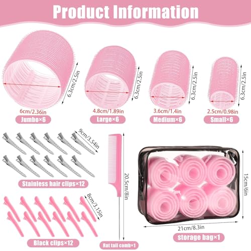 - Value Pack: Set comes with 24 hair rollers (4 different sizes/4 colors), 24 hair clips, a rat tail comb and a storage bag. The quantity is sufficient and can be used for a long time, or it can be given as a gift to family and friends.