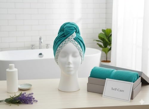 - تصميم عملي ومريح: تصميم لف الشعر التقليدي مع شريط مزخرف أنيق يحمل المنشفة بأمان على الرأس