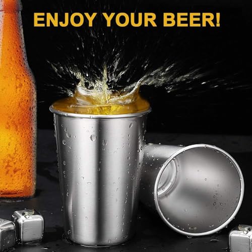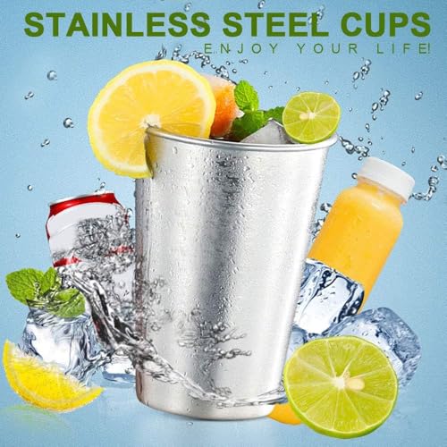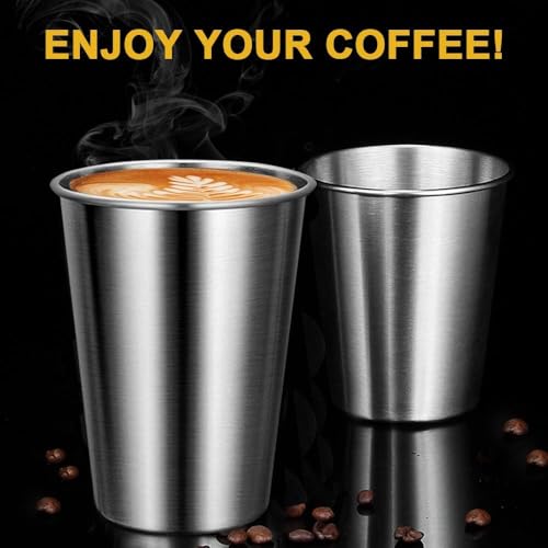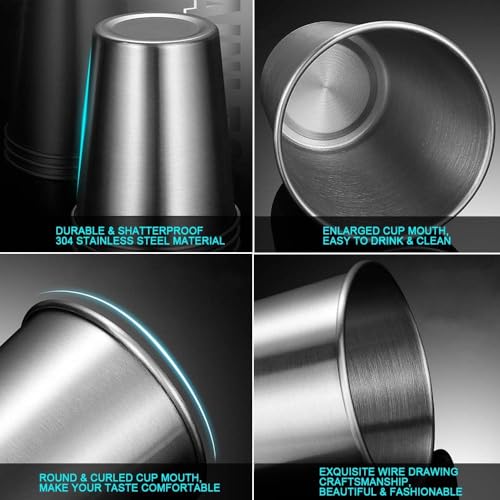 Generic - Premium 304 Stainless Steel Drinking Cups Stackable Shatterproof Metal 350ml Silver (4)
