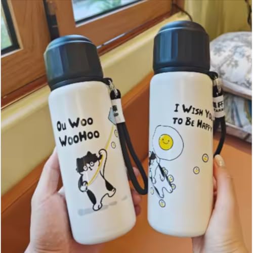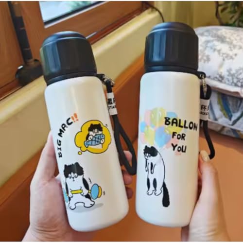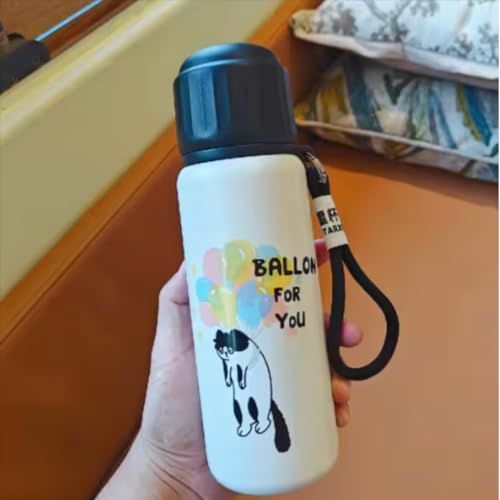 Generic - Premium 550ml Cartoon Cat Water Bottle for Children, Stainless Steel Vacuum Cup, Portable Leak-Proof, Non-Spill, Keeps Drinks Hot and Cold, Durable for Students and Travel (Beige - Balloon Design)