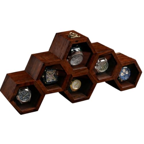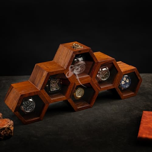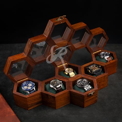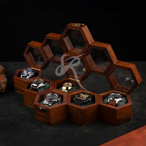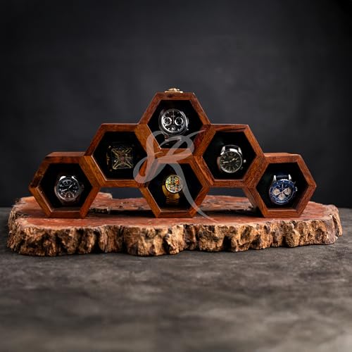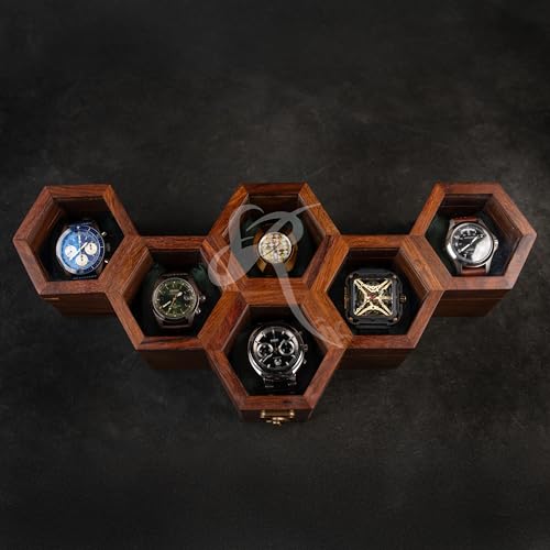 Royal Craft Expertise - Premium 6-Slot Wooden Timepiece Display Case – Handcrafted Honeycomb Watch Box for Men in Superior Indian Rosewood | Hinged Glass Cover – Father’s Day Gift – Luxury Built to Last