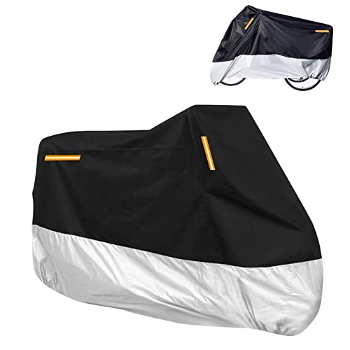 Foxtell - Premium Adult Tricycle Cover, Fit All 3-Wheel Bike or Motorcycles Outdoor and Indoor Storage, 104" L x 43.3" W x 49" H (Black & Silver, 210D)