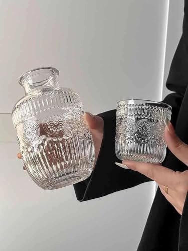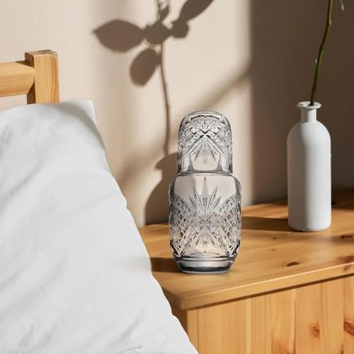 Generic - قارورة زجاج كريستال فاخرة وعملية، مثالية لتقديم المشروبات الباردة، تأتي بجودة مستوردة عالية وكوب أنيق مدمج للاستخدام المريح والأنيق. (شفاف 1 قطعه)
