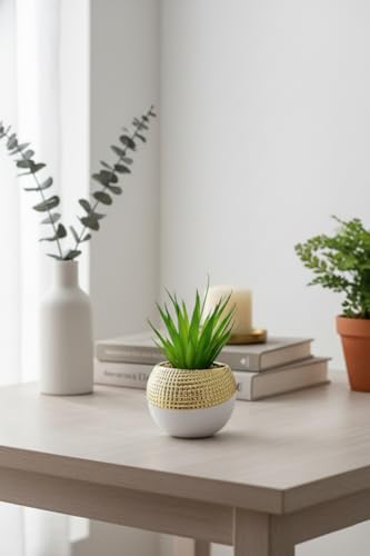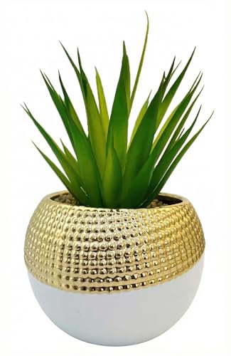 Generic - Premium Artificial Cactus Plant in Gold and White Pot – Modern Home & Office Decor, 10cm Diameter, Suitable for Table, Shelf, Desk, Bathroom, Kitchen, Natural and Elegant Shape for Decorative Plants