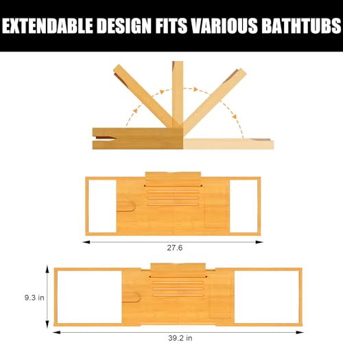 - FOLDABLE & EXPANDABLE: This bathtub caddy was specifically designed to expand from 27.5 inches to 39 inches,fits all standard roman bathtub, you just need to manually adjust it to the right length and don't need any tools. The bath caddy tray for tub neatly folds in half, making it easy to carry around or store.