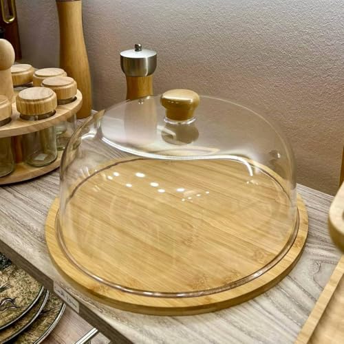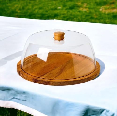 Generic - Premium Cake & Tart Case with Clear Lid and Natural Wood Base – Elegant Design for Preserving and Serving Desserts k