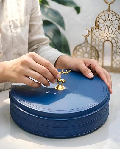 - The divided interior with a rotating lid allows seamless organization of multiple snack types—such as nuts, candies, biscuits, and kahk—keeping them neatly separated for easy access during gatherings or daily use.