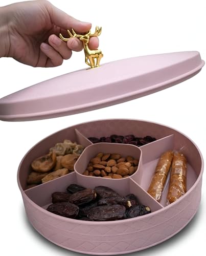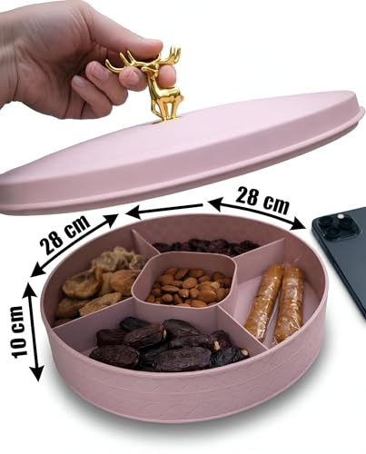 - يسمح الجزء الداخلي المقسم بغطاء دوار بتنظيم سلس للوجبات الخفيفة المتنوعة - مثل المكسرات والحلوى والبسكويت والكحك التقليدي - مما يحافظ على كل نوع منفصلاً بدقة لسهولة الوصول إليه أثناء التجمعات أو الاستخدام اليومي.