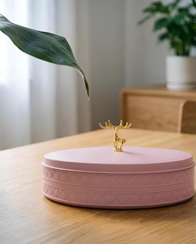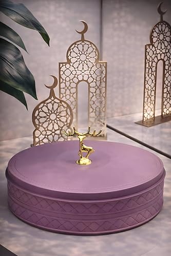 - بقطر 27 سم وارتفاع إجمالي 13 سم (هيكل 7 سم + غطاء مزخرف 6 سم)، يتناسب حجمه الصغير بسهولة على الطاولات أو الأرفف أو الألواح الجانبية مع توفير سعة كبيرة للترفيه عن الضيوف.