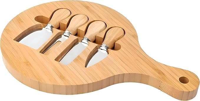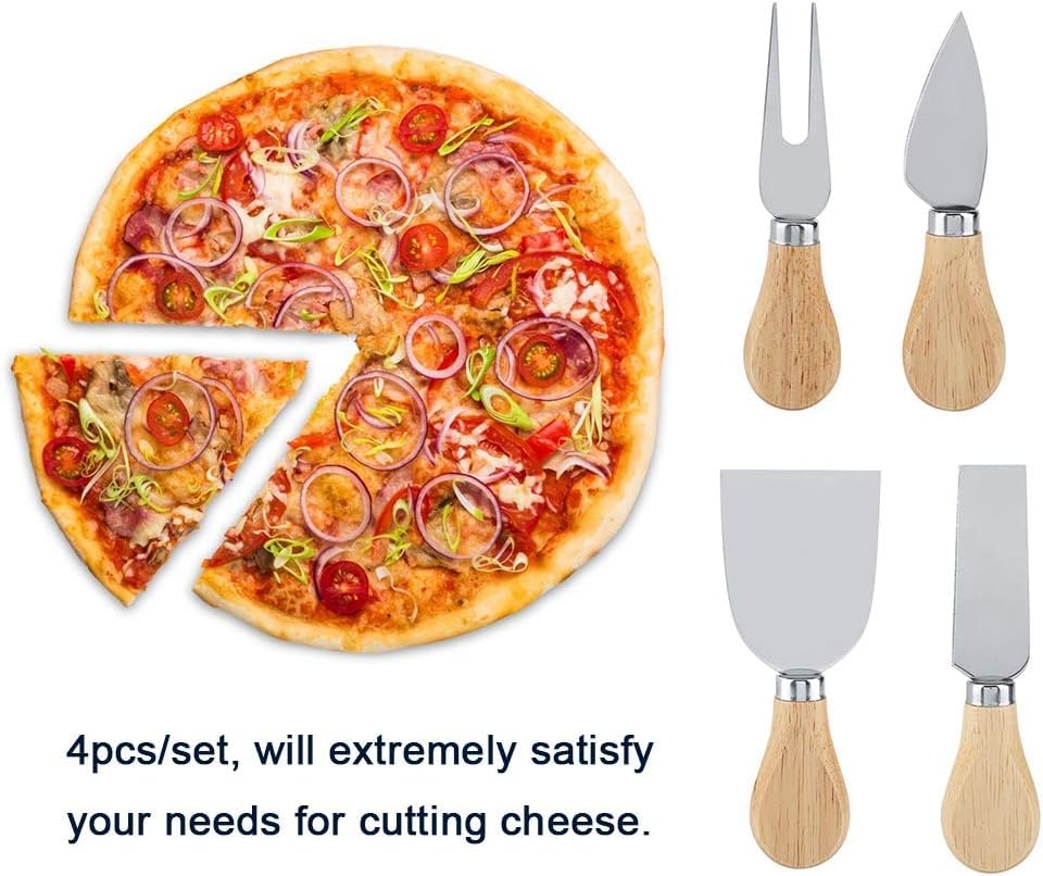 - 💗COMPLETE KIT: includes 5 pieces - Natural wooden serving board and four different functioning knives, perfect for serving all types of cheese.