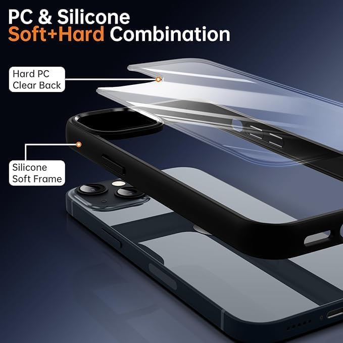 Generic - Premium Clear TPU Case with Shockproof Silicone Frame – Perfect Protection & Sleek Style Compatible with Iphone 14 (Clear & Black)