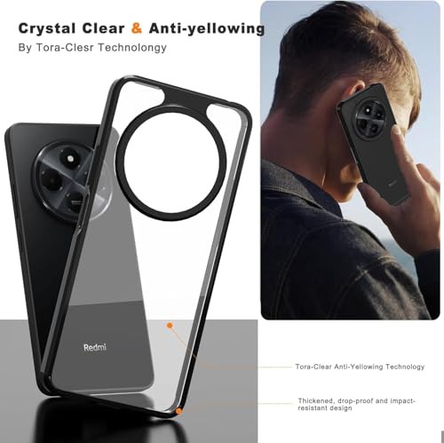Generic - جراب شفاف من البولي يوريثين الحراري مع إطار سيليكون مضاد للصدمات لحماية فائقة بنمط أنيق متوافق مع ريدمي 14C شبكة الجيل الرابع 4G وريدمي A4 وبوكو C75، أسود وشفاف