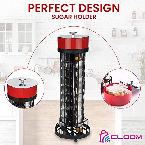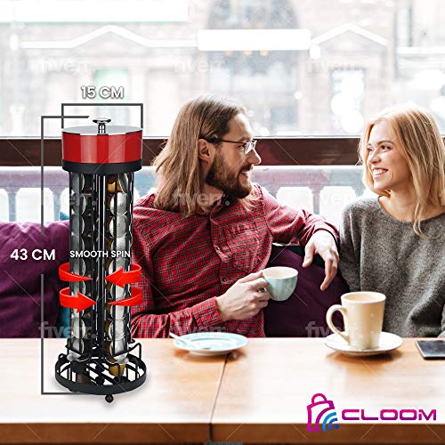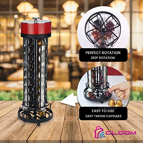 CLOOM - Premium Coffee Capsule Pod Stand Rack Holder With Sugar/Cookies/Tea bag BOX, Counter-top, Holds 40 Nespresso capsules,Espresso, K-cup Capsules, Spin 360 Degree,Ideal for Home Kitchen Office Restaurant