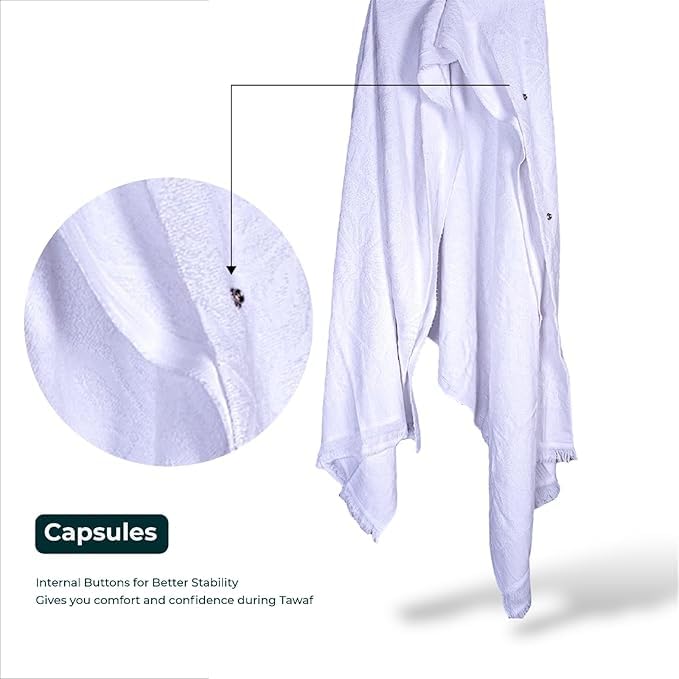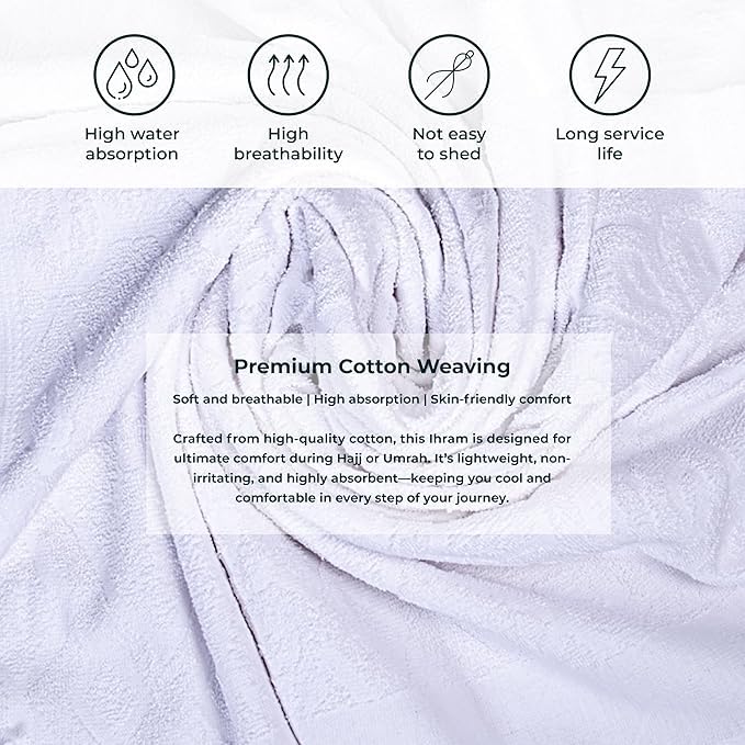 Generic - Premium Cotton Ihram Set for Men with Clips, High Absorption, Breathable Fabric with Waistband, One Size Fits All