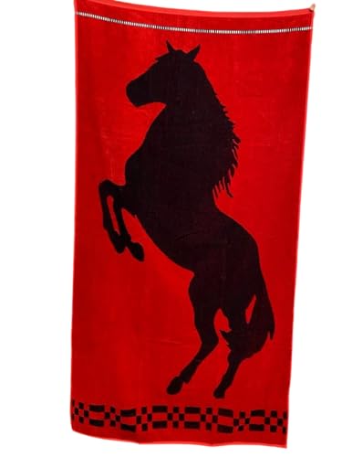 Generic - منشفة قطنية فاخرة - 170 × 70 سم - احمر بتصميم حصان اسود - ناعمة وماصة وأنيقة - مثالية للمنزل وصالة الالعاب الرياضية والشاطئ