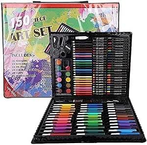 Generic - Premium Drawing and Coloring Supplies Set for Kids – 150 Pieces, Watercolor and Pastels, Perfect Gift (Black)