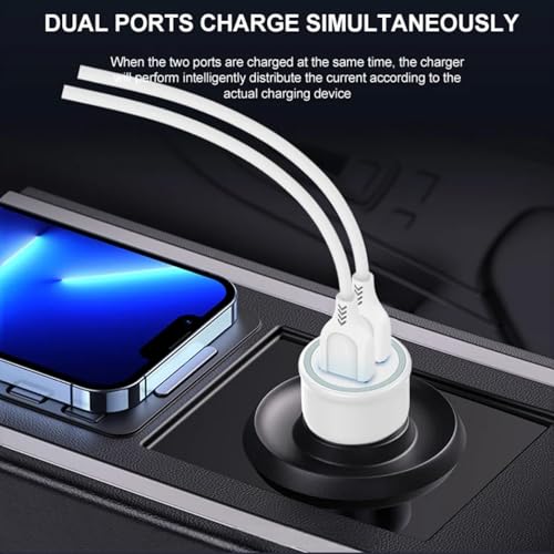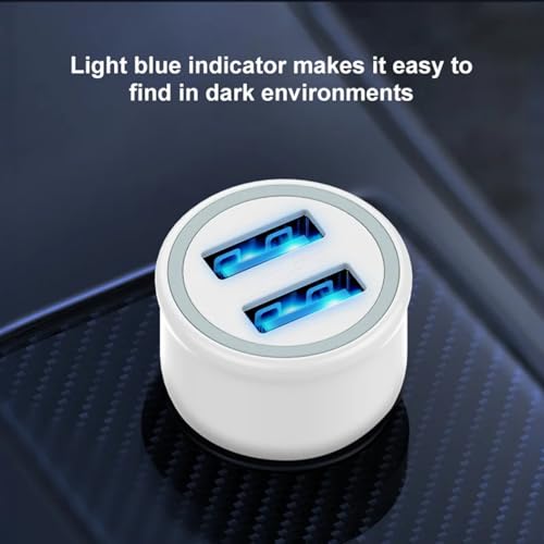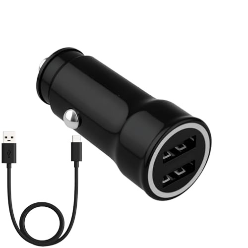 Generic - Premium Dual USB Car Charger, 3.4A Fast Charging, Black with Blue LED, Temperature Protection, MFI Certified, Rapid Charge, Includes Usb Type-c Cable