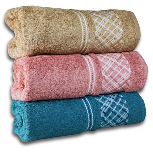 Generic - مجموعة مناشف حمام كبيرة فاخرة من القطن المصري الممتاز (3 قطع) – فائقة الامتصاص و ناعمة و سريعة الجفاف, للاستحمام, الجيم , الشاطئ, متعددة الالوان, مقاس 140*70 سم 3 (كافية, كشمير, جنزارى)
