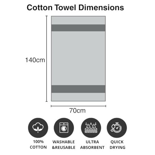 - مقاس مثالي 140*70 سم : توفر تغطية مثالية للجسم بعد الاستحمام أو الجيم أو أثناء السفر, الحجم الكبير يمنحك الراحة، وسهولة اللفّ، والتجفيف السريع