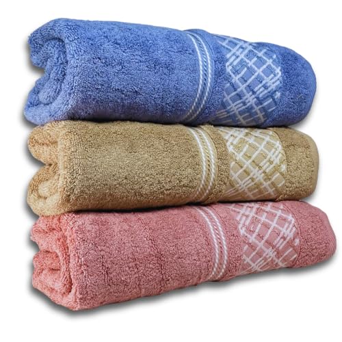 Generic - مجموعة مناشف حمام كبيرة فاخرة من القطن المصري الممتاز (3 قطع) – فائقة الامتصاص و ناعمة و سريعة الجفاف, للاستحمام, الجيم , الشاطئ, متعددة الالوان, مقاس 140*70 سم 3 (سماوى, جملى, كشمير)