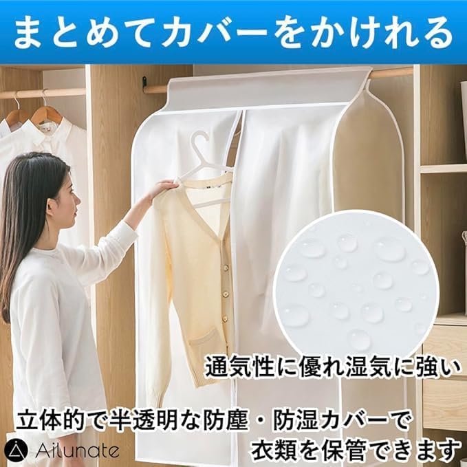 - (Can cover your clothes together and together) The three-dimensional, translucent and dust-proof cover can store your clothes. The cover is made of breathable and moisture resistant. The bottom is also covered with a cover, making it perfect for repelling insects Easy access zipper: Unzip the side of the cover to open the cover, so you can easily take out or take your clothes Translucent type that allows you to see the contents of your garment: The translucent color allows you to see the clothes neatly stored inside the cover from the outside.