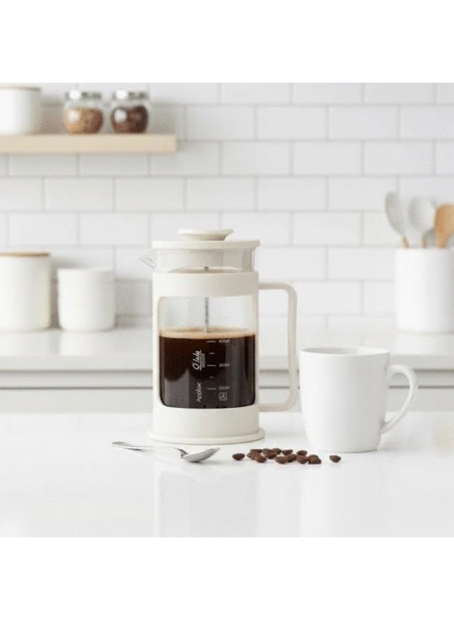 Generic - Premium Glass French Press Coffee Maker – 600ml Heat-Resistant Borosilicate Coffee Press with Stainless Steel Plunger & Fine Mesh Filter White