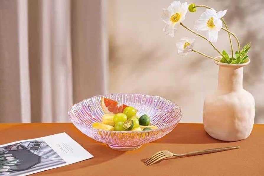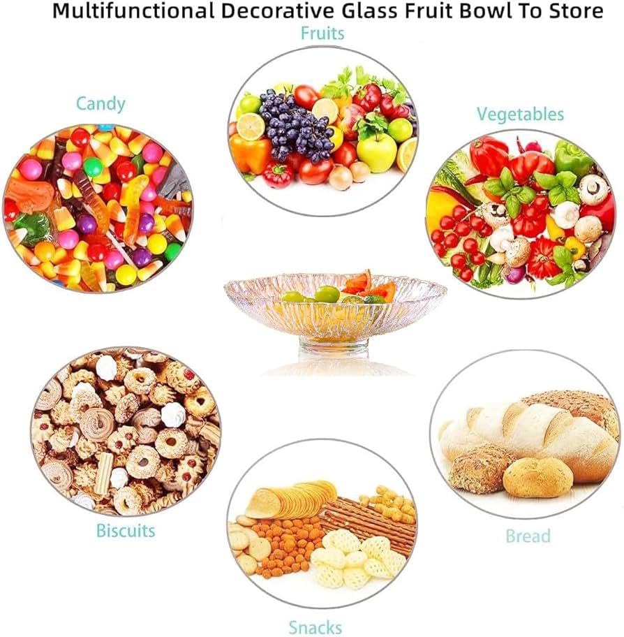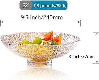 - ✅ (تصميم عصري) مصنوع من زجاج عالي الجودة يتميز بمظهر شفاف وأنيق يجعله مثاليًا لتقديم الفواكه والحلويات بأناقة.