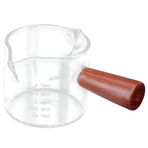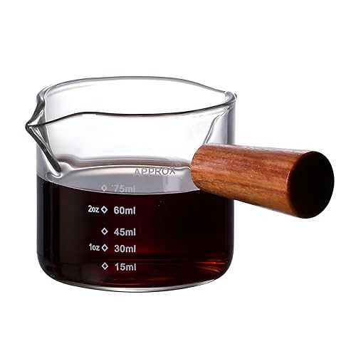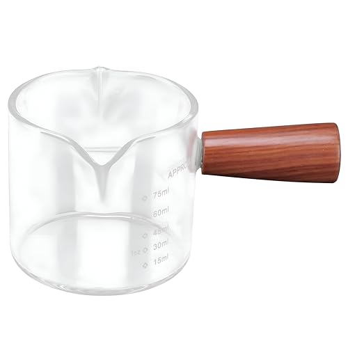 - The double-spout measuring cup has a clear design with clear 1-ounce markings for easy measurement and use. Its ergonomic handle is easy to pour, without spill, making it perfect for cooking, mixing ingredients and serving drinks.