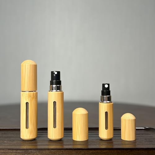 SHOWDAY - "Premium Glass Spray Bottle with Natural Bamboo Lid – Refillable for Perfumes, Essential Oils & Cosmetics – Stylish Design, Eco-Friendly, Perfect for Travel & Everyday Use" (5ML)