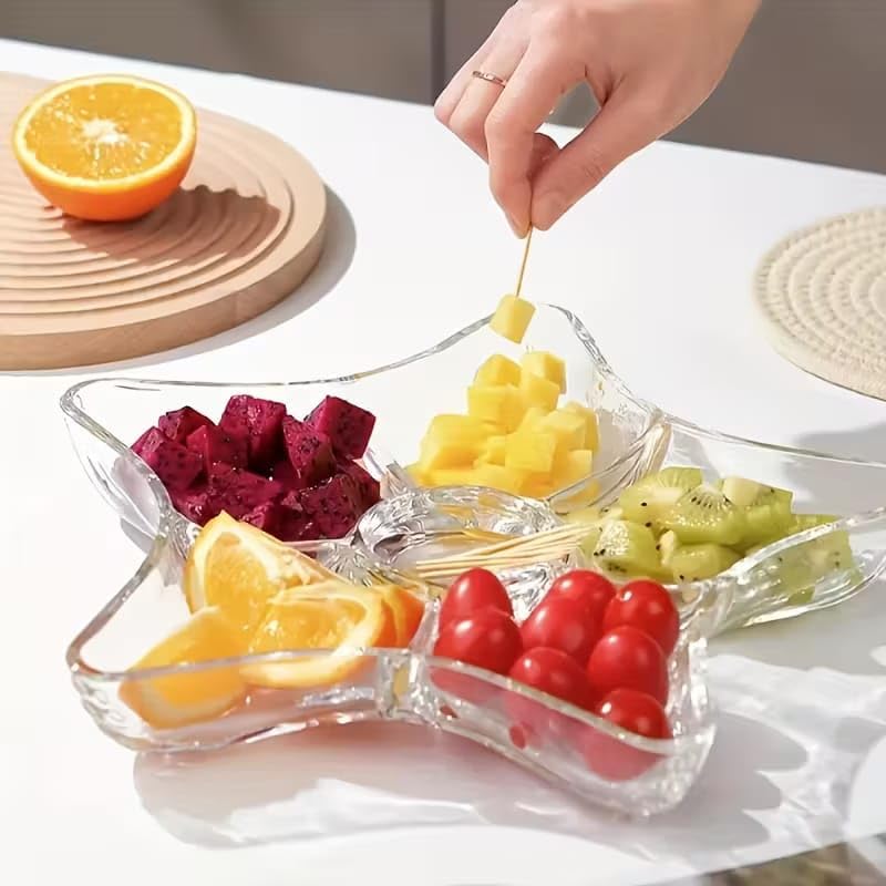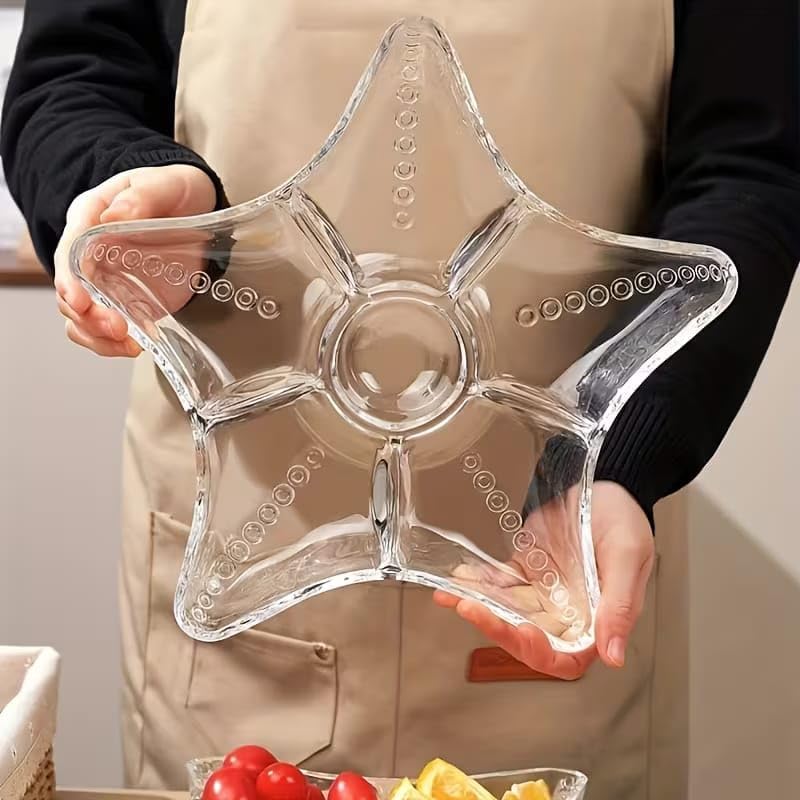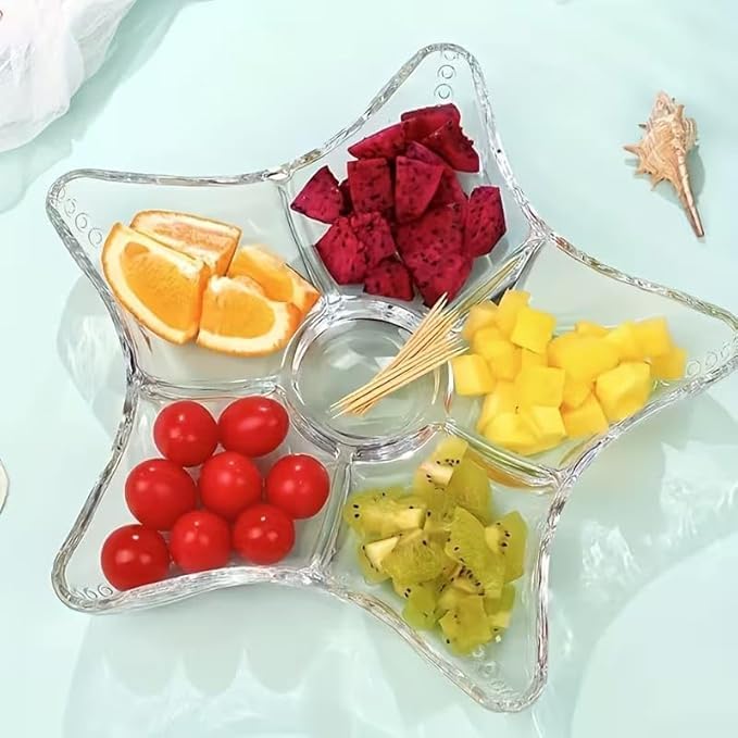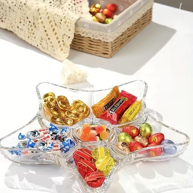Generic - Premium Glass Star Shape Tasali Plate, Made of High Quality Pure Glass, Divided into 6 Compartments to Serve Tasali, Appetizers and Salads Elegantly, Practical Chic Design, Microwave Safe