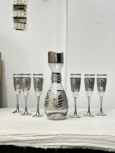 Generic - Premium Glass Tumbler Set with Flask, Clear and Silver, Crystal Glass, for Drinks and Home Hospitality